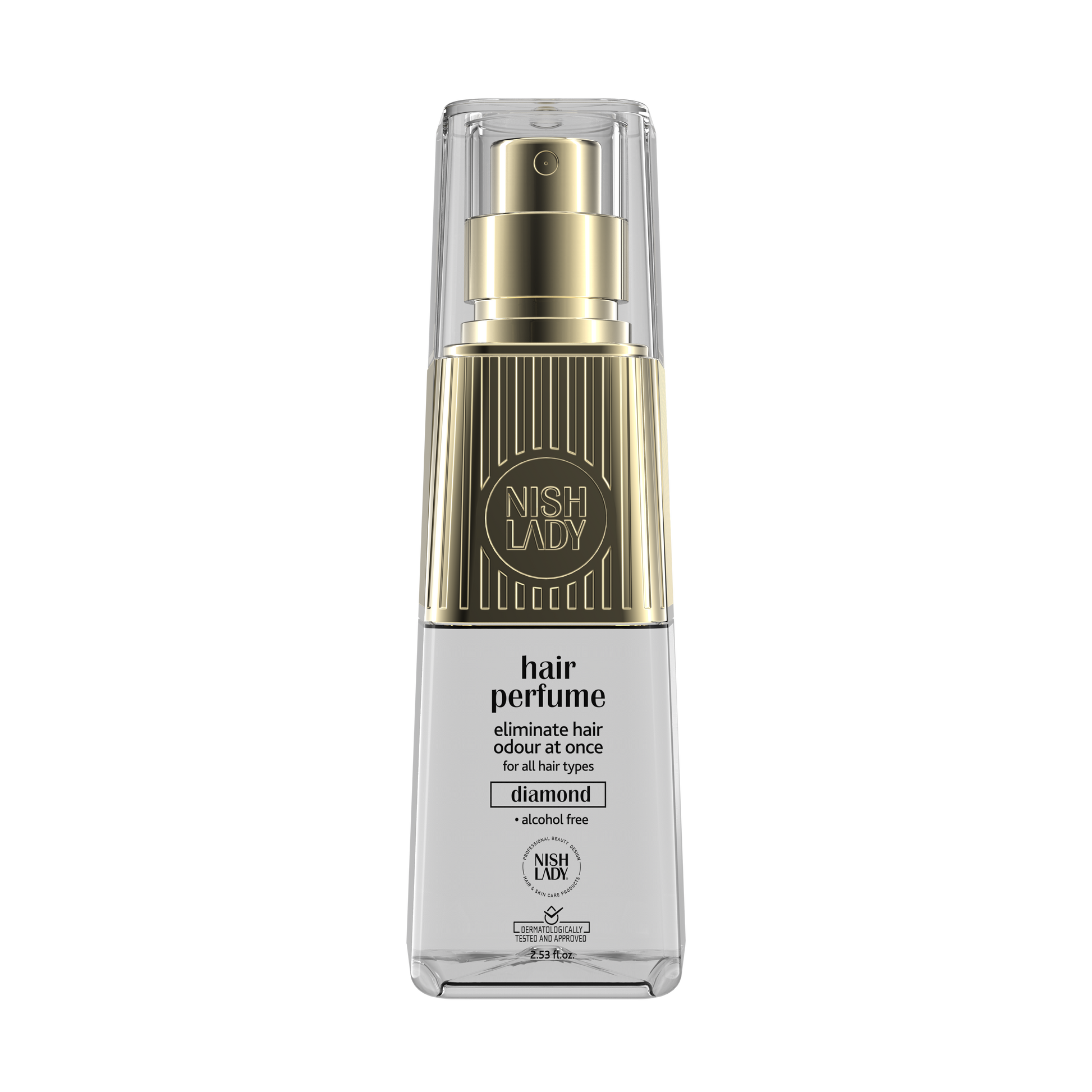 Nishlady Diamond Hair Perfume е перфектното допълнение към вашата рутина за грижа за косата, като предлага деликатен и луксозен аромат, а също така поддържа косата ви мека и блестяща. Той оставя косата ви да изглежда и да мирише невероятно, като е идеалният завършек за всяка прическа.