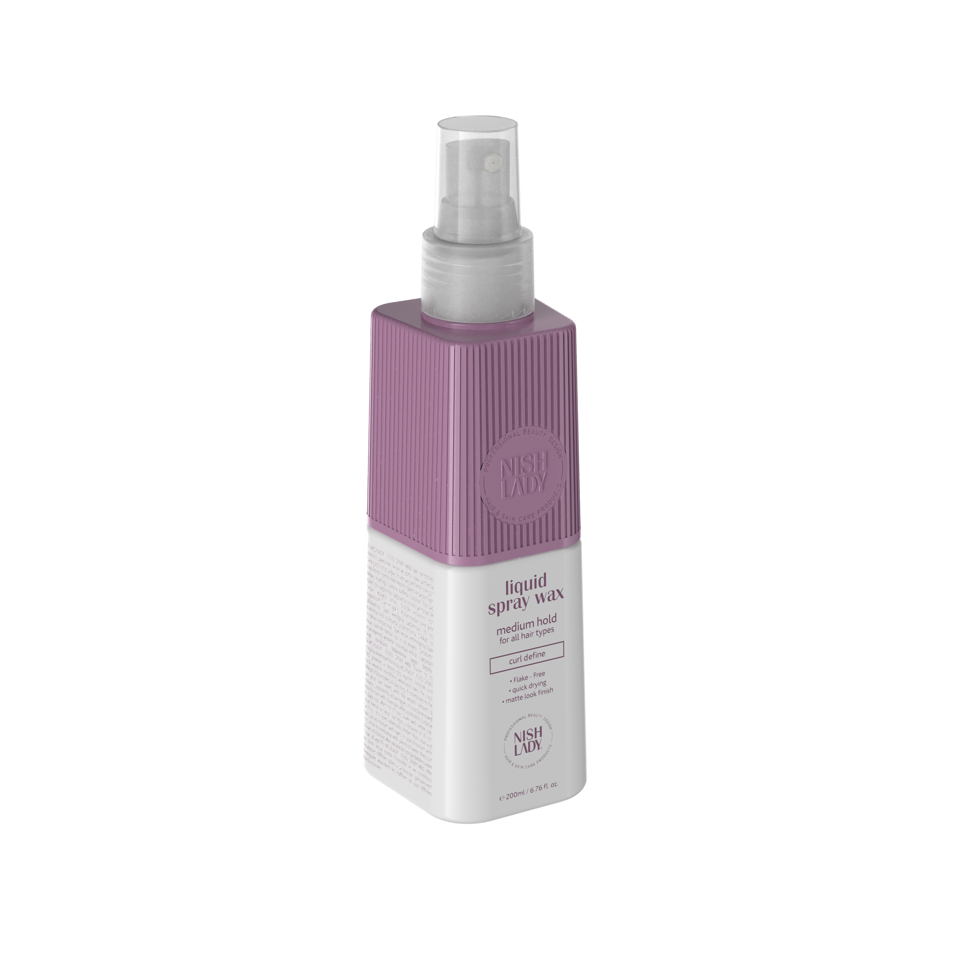 Nishlady Liquid Spray Wax, 200 ml е професионален продукт за стилизиране, създаден да осигури гъвкаво задържане и блясък, като добавя текстура и дефиниция на косата. Този течен спрей восък предлага леко решение за постигане на естествен, но стилен външен вид с лекота. Ето по-подробно описание на неговите характеристики: