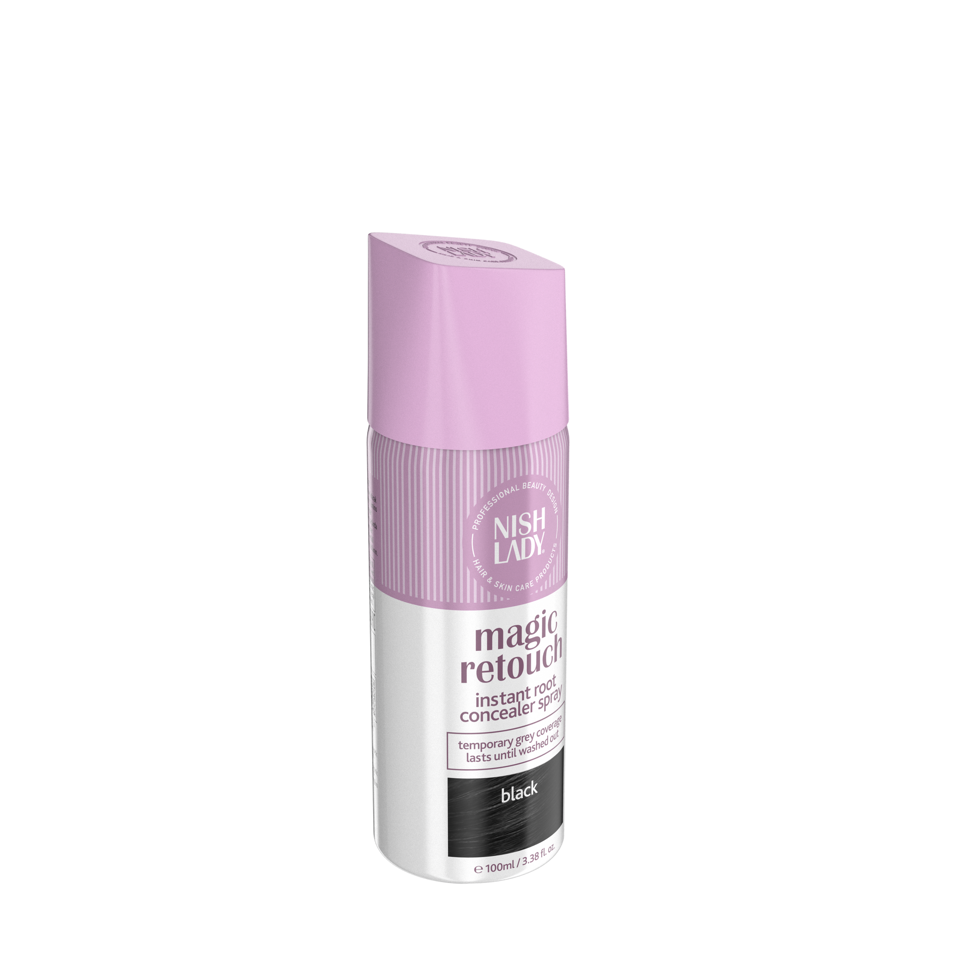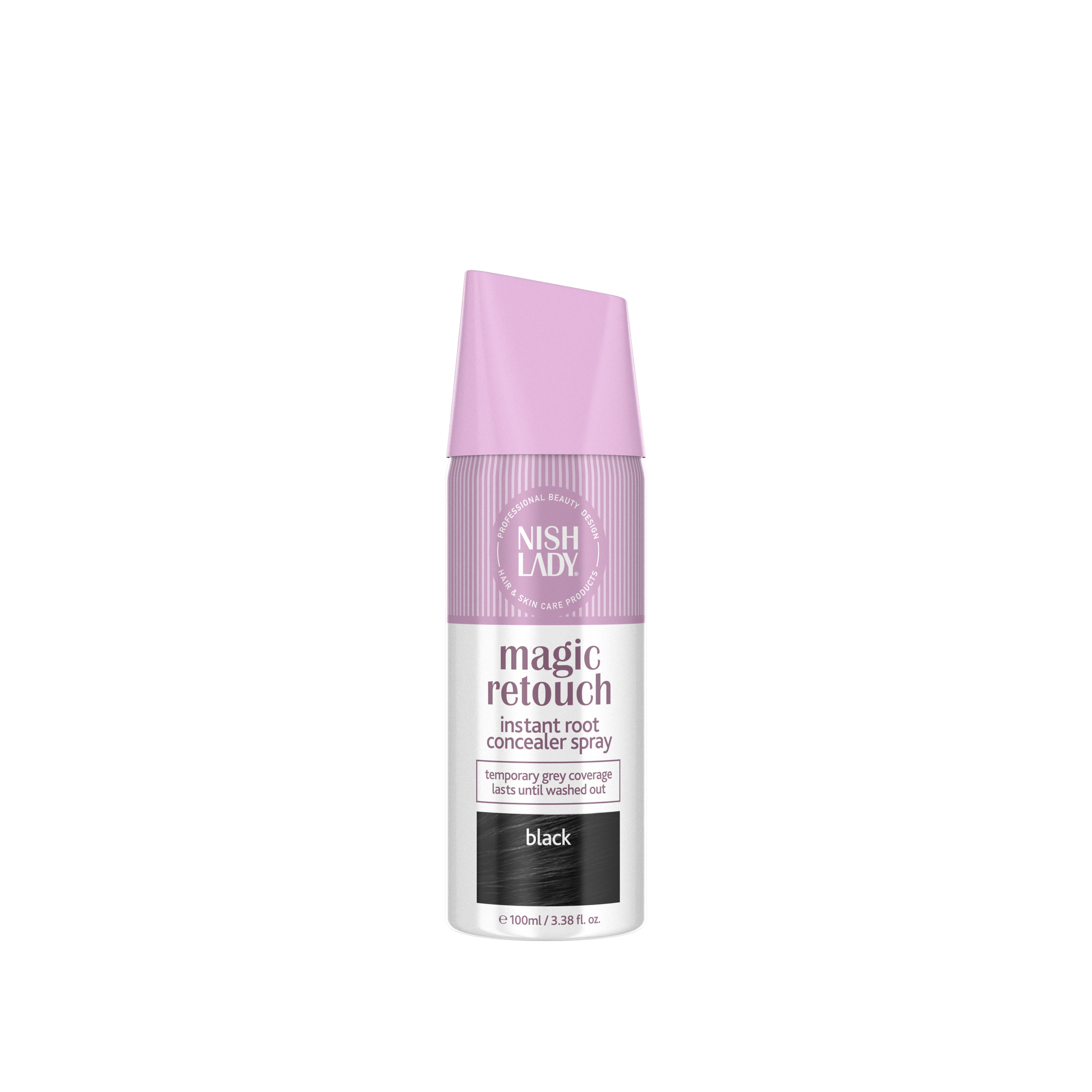 Magic Retouch черен спрей е бързо и ефективно решение за покриване на бели корени и нежелано израстваща коса. Този професионален спрей за коса е създаден да се слива без усилие с естествения цвят на косата ви, предоставяйки безупречен и дълготраен резултат без необходимост от посещение на фризьор. Идеален за заети хора, които искат да поддържат свеж и наситен цвят на косата си между фризьорските посещения.