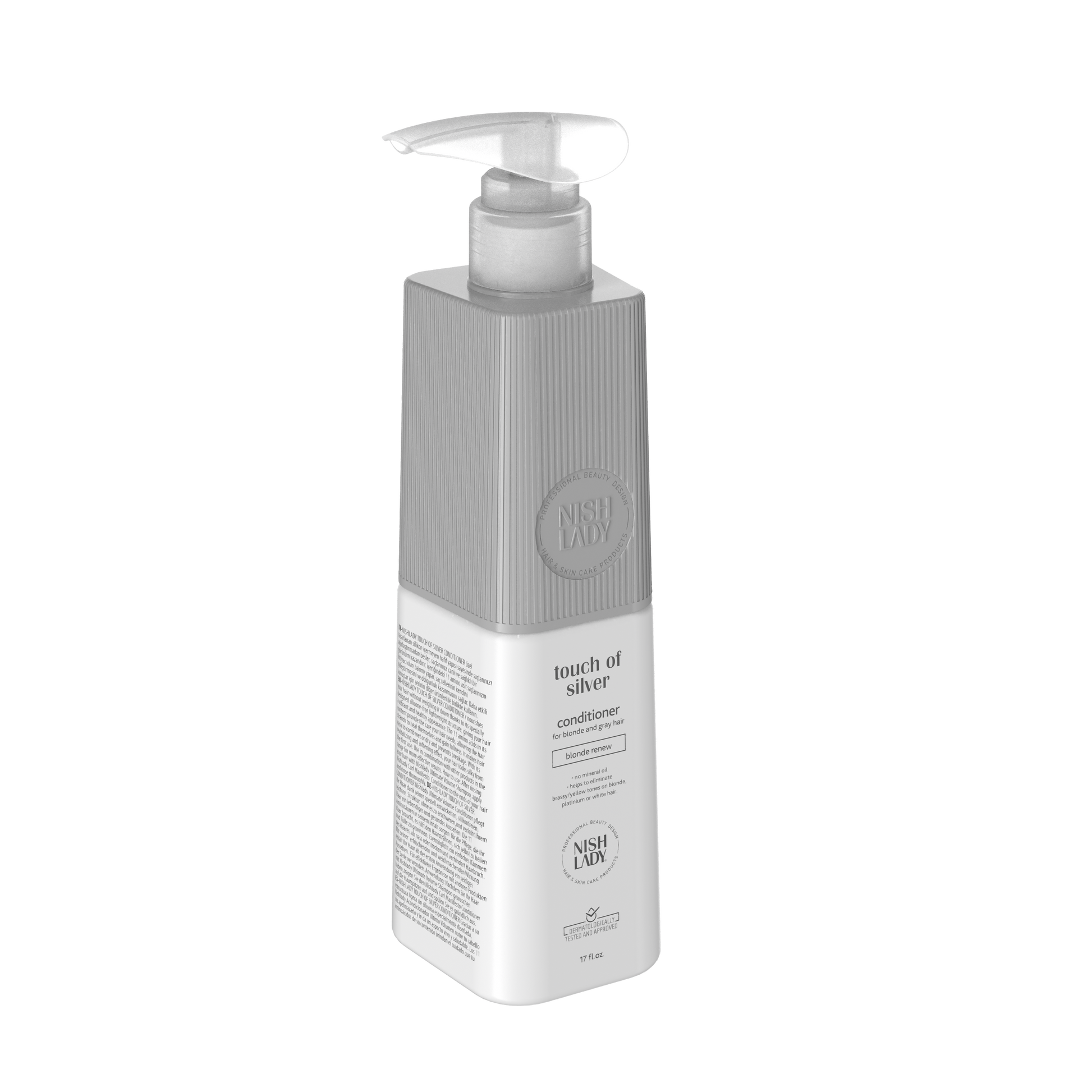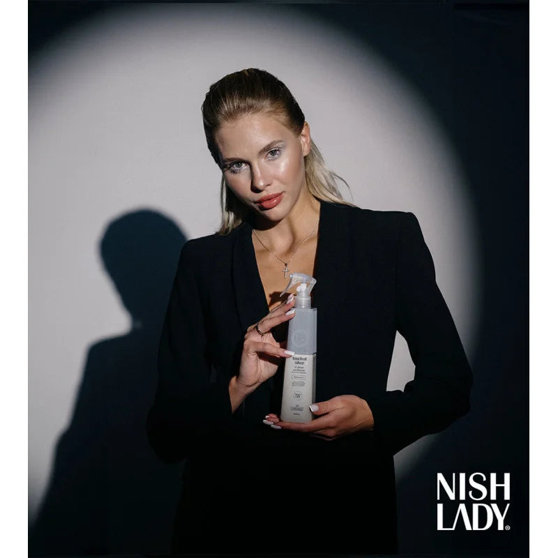 Nishlady Touch of Silver балсамът е перфектен за блондирана, боядисана или сива коса, предлагайки както корекция на цвета, така и дълбоко подхранване за по-светъл и здравословен вид.